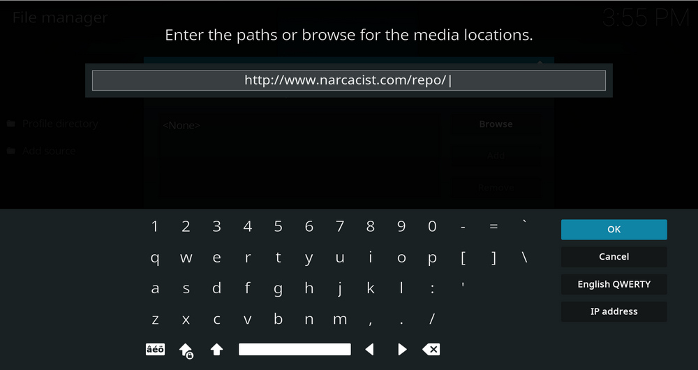 Step 6. Define a name for the media source we just added as narcacist, in lowercase. Then hit OK underneath.