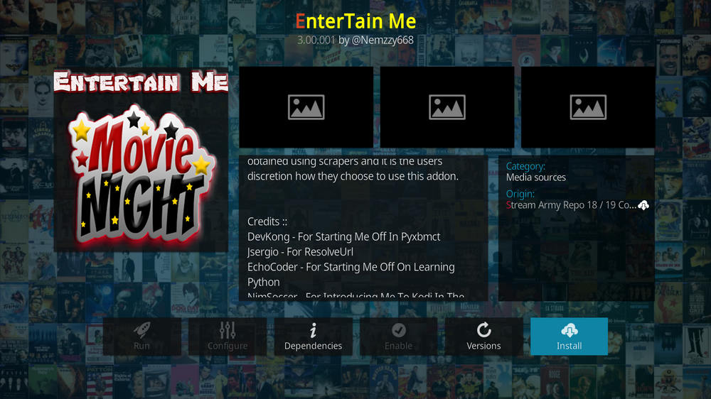 Follow the tutorial to try Entertain Me addon now! If you have any question during installation or using, feel free to reach us on Twitter | Facebook and I'll be glad to help. For addon support, follow Nemzzy on Twitter.