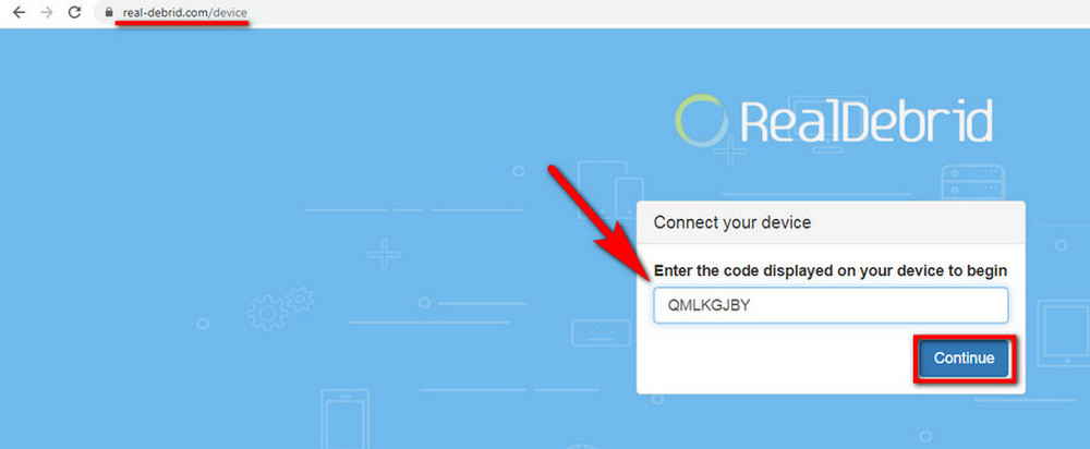 Step 5. Visit https://real-debrid.com/device, enter the authentication code exactly. Then you'll have to login with your RD account if you haven't.