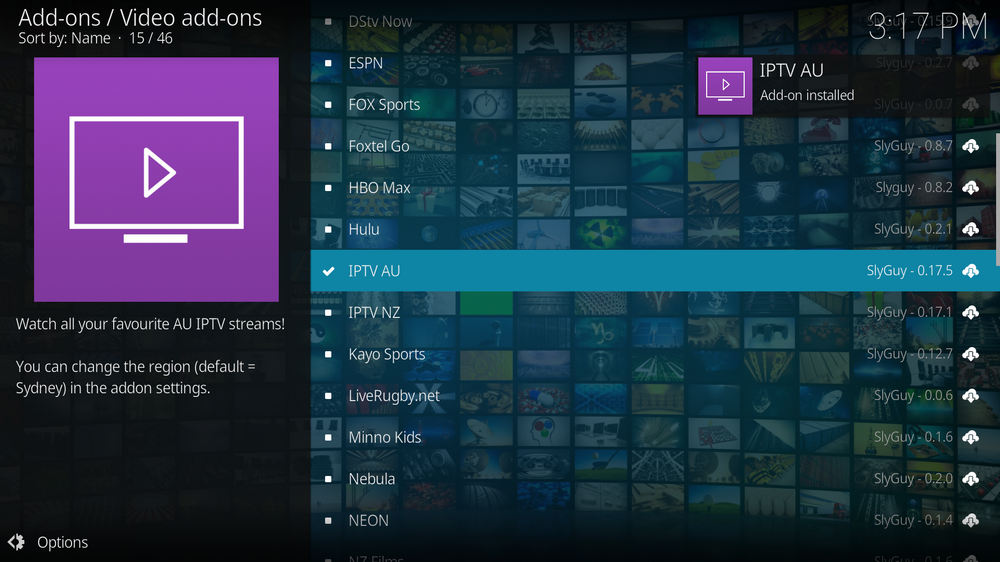 IPTV AU addon is a free IPTV addon from SlyGuy Repository for watching Australia channels.