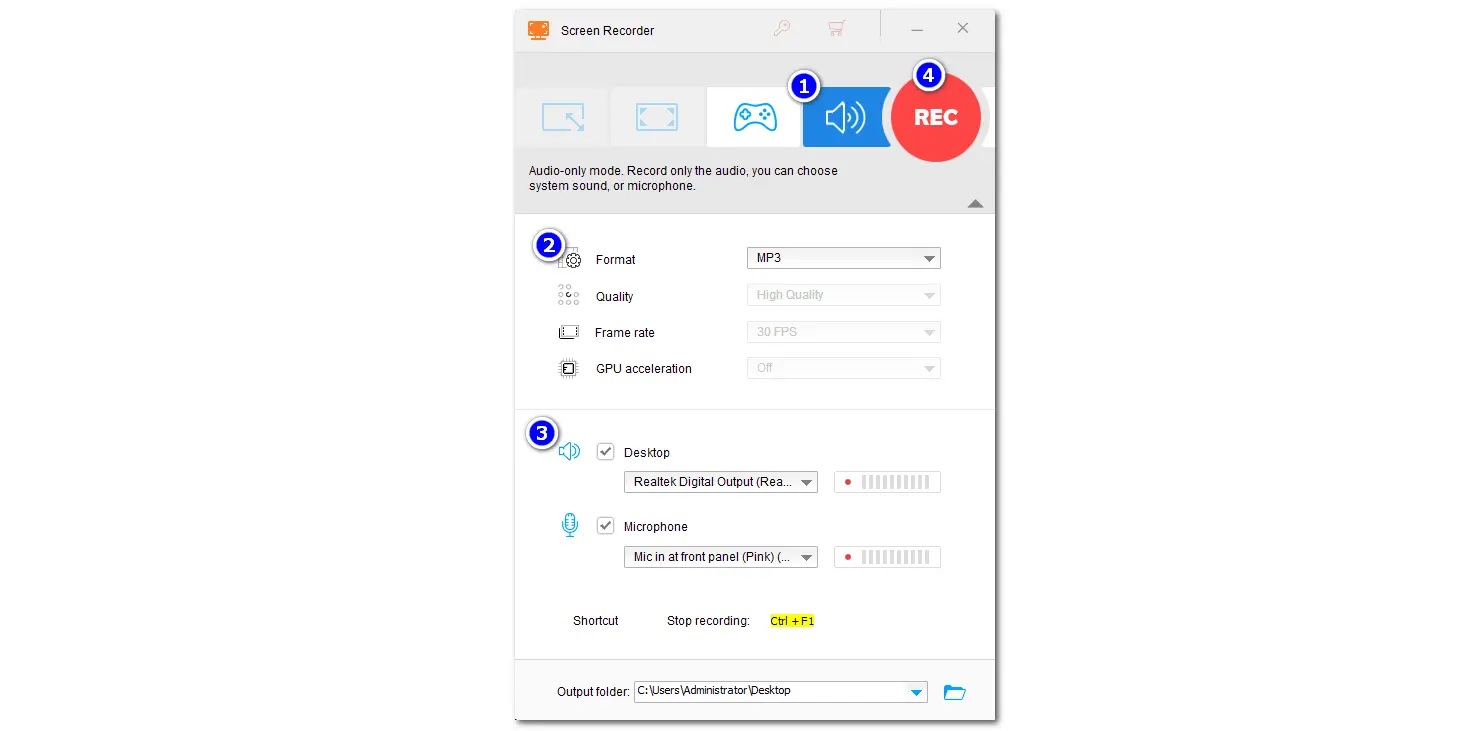 * The "Desktop" and "Microphone" are enabled by default, so you don't need to change them.