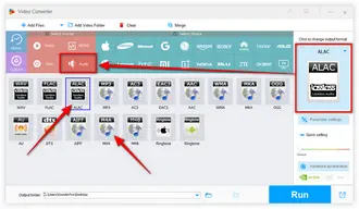 To convert AIFF to Apple Lossless M4A, head over to "Audio" category and select "ALAC" profile, so that you can get the lossless M4A audio files while keeping the best audio quality and saving lots of storage space.
