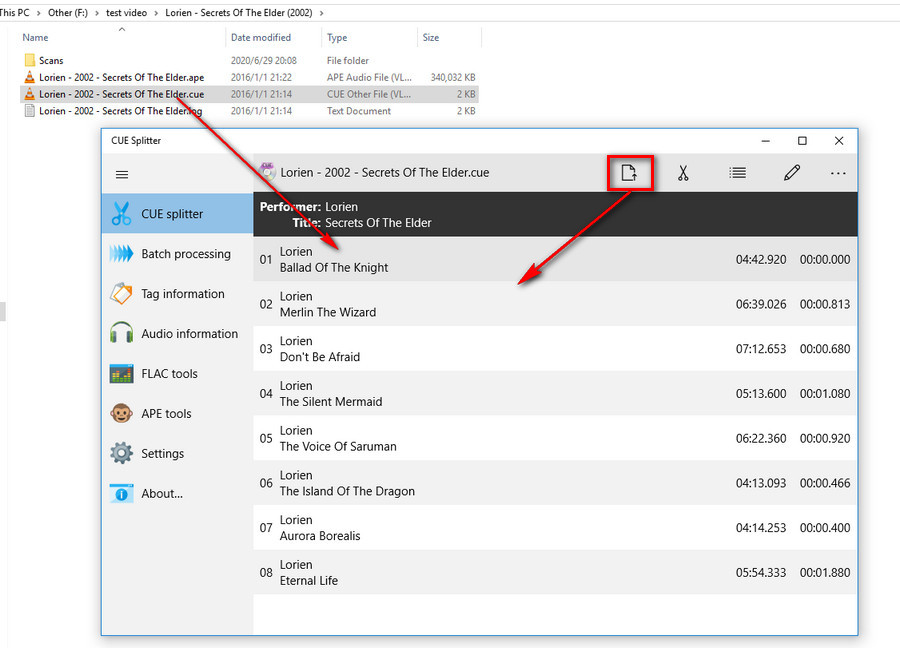 For those audiophiles who are obsessed with APE lossless music,you may notice that a small .cue file is always seen in the ripped album folder. The CUE sheet is a text-based metadata file that defines how the tracks are organized in the entire large APE file, just like a playlist. Don't underestimate such a small CUE file, without it, most media players and editing programs are unable to recognize and locate certain track in a whole APE album file. To address this inconvenience, I'll elaborate on how to split APE files into tracks below. Make sure both of the .ape file and .cue file are in the same folder with the same name. Let's get started.