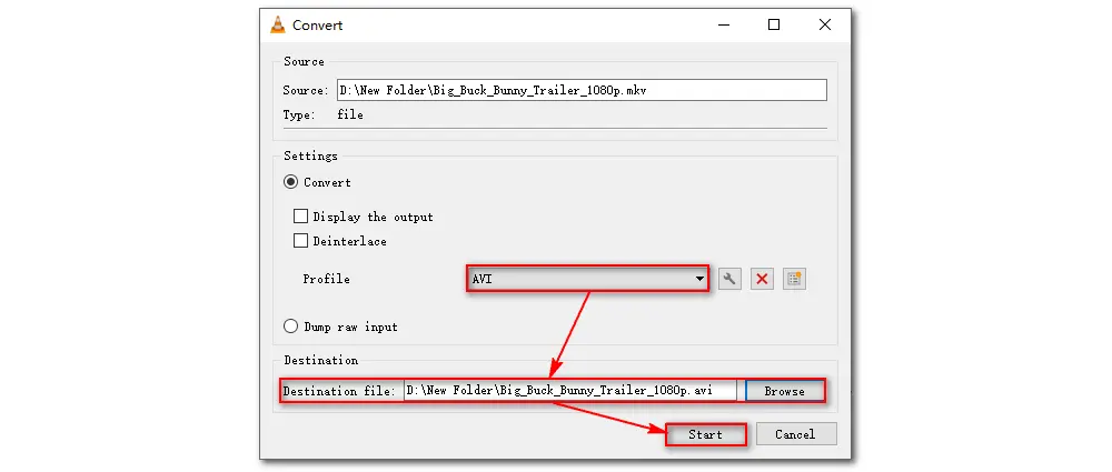 Step 8. Click "Browse" to set the output folder and rename the file. Make sure the file extension is .avi.