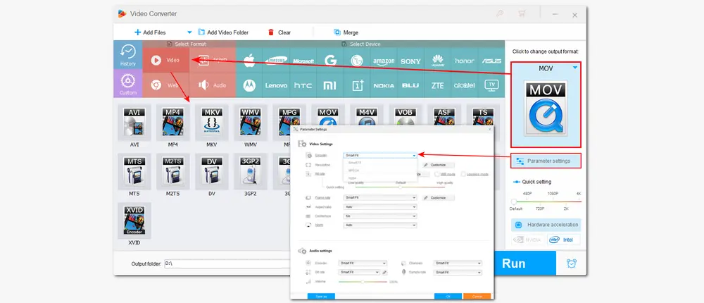 If you want to change the video container, hit the format image on the right side of the interface to select a format under the “Video” category. Or you can also choose the same format and then modify the video codec in the “Parameter settings” window.