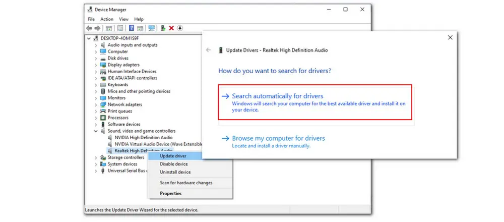 ▪ Right-click on the sound card for your device and select Update driver.