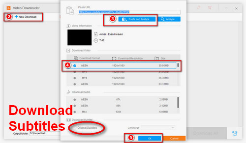 After the short loading time, video and audio download options in different qualities are listed in the center of the dialog. Choose one of them. Optionally, this downloader further allows you to download YouTube subtitles. Remember to select the subtitle download checkbox.