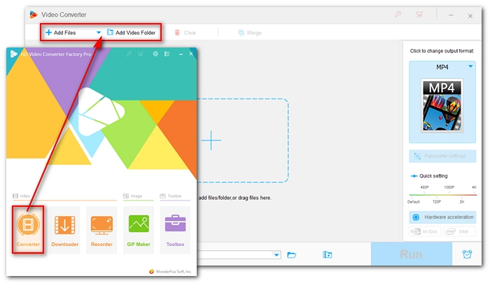 Launch WonderFox HD Video Converter Factory Pro and enter the ‘Converter’ module. Then click ‘+ Add Files’ or ‘Add Video Folder’ to import MKV files into the conversion list. Alternatively, you can drag and drop the files directly into the program.