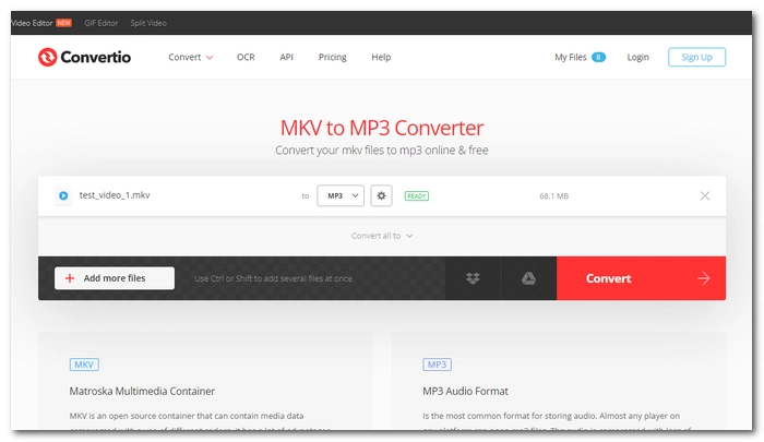 Right now, check out how to convert MKV to MP3 online for free with Convertio.co: