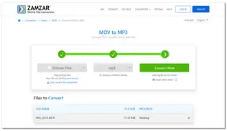 Zamzar is also a popular online video to audio converter that can help you convert MOV to MP3 on any device.