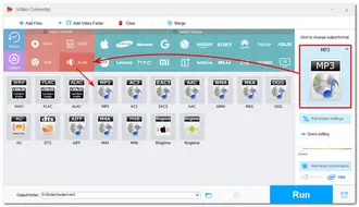 Step 3. Click the right-side format image to open the output format library. Go to the "Audio" tab to choose "MP3" as the output format.