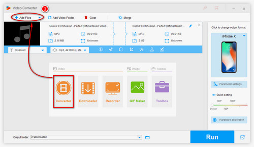 Launch WonderFox HD Video Converter Factory Pro and click Converter in the video option, then find +Add Files in the new interface to add MP3 file or drag MP3 file to the interface directly.