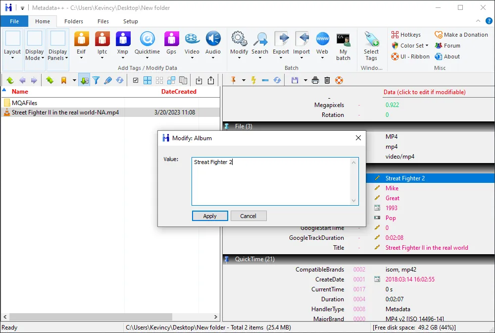 Metadata++ is a powerful and user-friendly metadata editor for Windows that supports an extensive range of file formats (images, videos, texts, audio), including but not limited to, MP4, AVI, and WebM. One of the key features of this software is its ability to edit the metadata of your MP4 files, allowing you to customize the title, artist, album, and other important information.