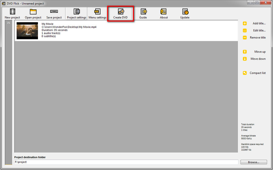 Step 2. Open DVD Flick, select Add title and import the slideshow you have created in part 1.