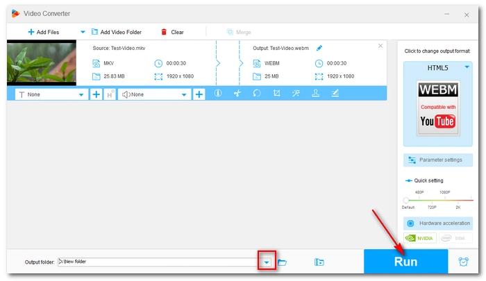 Finally, press the â–¼ button to set an output folder and click Run to start the conversion. Once the video is converted, you should be able to play it in Chrome without issues.