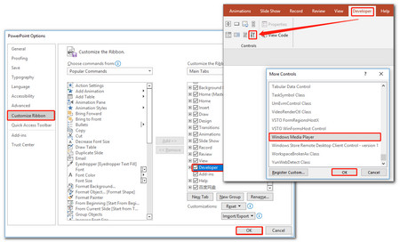 Step 3. Under the "Developer" tab and "Controls," choose "More Control". Then select "Windows Media Player" from the available list and click "OK".