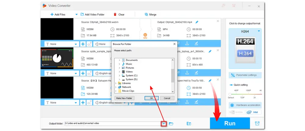 Step 3. Click on the inverted triangle button to choose an output folder for the converted files. Finally, press โRunโ to start the conversion at once.