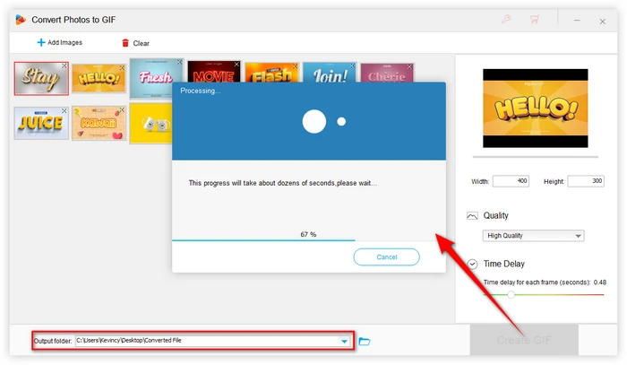 Choose a location to save your GIF file. Hit that "Create GIF" button and watch the magic happen. Your PSD files will start transforming, frame by frame, into a smooth, animated GIF file.