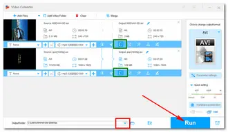When everything is ok, click the inverted triangle button to set an output folder. Then press the Run button to export the edited video files.