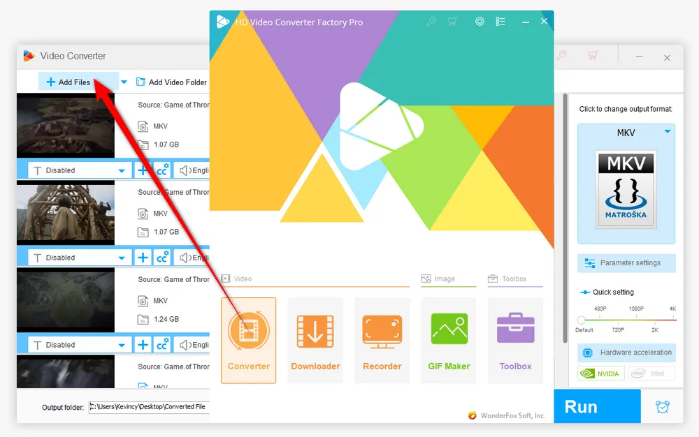 Launch HD Video Converter Factory Pro and open "Converter" module. Add your various video files that won't play on TCL TV by pressing "Add Files" button. A simple drag-and-drop is also allowed.