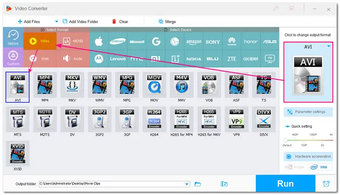 WonderFox HD Video Converter Factory Pro is a powerful video and audio processing tool that is capable of converting TS to AVI files in a trouble-free way. This professional video conversion tool supports all types of TS files, regardless of file size and length. With only a few simple clicks, you can get the converted AVI video files with high-quality preserved. Moreover, its batch conversion mode and hardware acceleration allow you to perform multiple conversion tasks simultaneously and boost the conversion up to 30X faster. In addition to conversion, you can also edit and compress large TS files with this tool. It also offers many customizations to the video parameters.