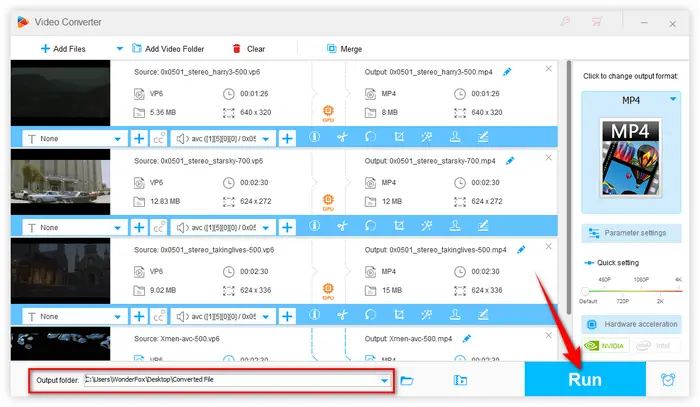 To save your time and energy, WonderFox HD Video Converter Factory Pro has you covered with a simple solution. It is an all-in-one video and audio processing toolkit that is well-qualified for serving as a VP6 to MP4 converter. Thanks to the WYSIWYG interface, it only needs 3 simple steps to implement the conversion at a fully hardware-accelerated speed. β‘οΈ