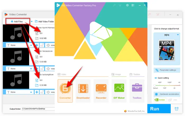 DownloadDownload, install, and launch HD Video Converter Factory Pro. Open the "Converter" module from 5 main features on the main interface. Click on "Add Files" or "Add Video Folder" button to import all of your WavPack audio files or simply drag-and-drop them into the blank space.